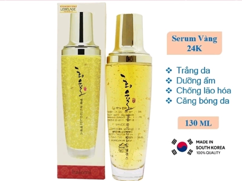 ❤️Serum vàng 24k - Serum dưỡng trắng da dưỡng ẩm tinh chất vàng 24k cao cấp Labelage Hàn Quốc Thương hiệu: Labelage Thể tích: 130ml Xuất xứ : Hàn Quốc ✜ Lebelage Heeyul Premium gold đặc biệt có chứa thành phần tinh bột vàng nguyên chất và được chiết xuất từ nhiều loại thảo dược quý hiếm như hồng sâm, trà xanh và các loại quả giàu dưỡng chất (Quả Lựu, Dâu Alba, hoa Diffusa, Cây Hoàng Cầm), protein cùng các vitamin ✜ Dưỡng chất Collagen cô đặc sẽ giúp se khít thu hẹp lỗ chân lông,