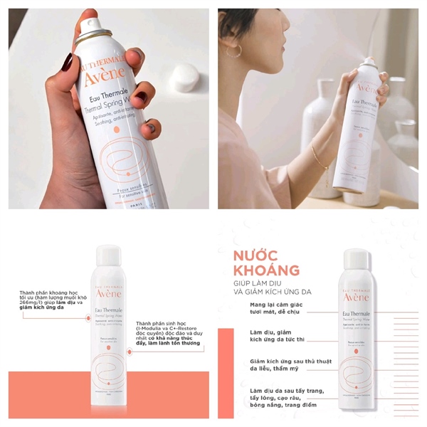 Để cách mặt 20cm và xịt đều nhẹ nhàng lên mặt và cổ từ 2-3 lần xịt cho tới khi nước khoáng tạo giọt trên bề mặt, để mặt khô tự nhiên vài phút hoặc vỗ nhẹ cho khô nhanh hay dùng khăn giấy thấm nhẹ.Sau đó, chị em có thể dùng kem hoặc sữa dưỡng